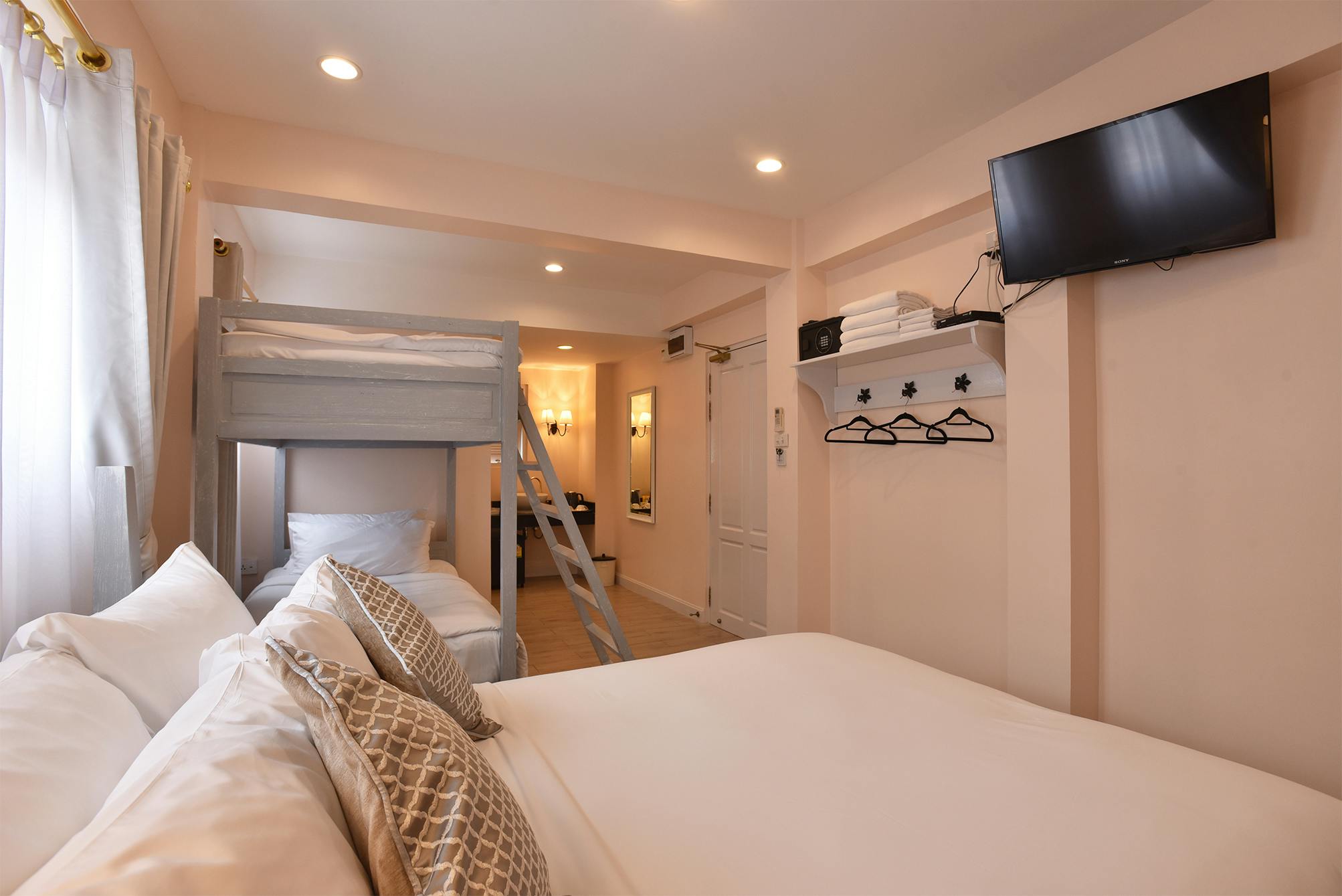 This family room has air conditioning, electric kettle and tile/marble floor.